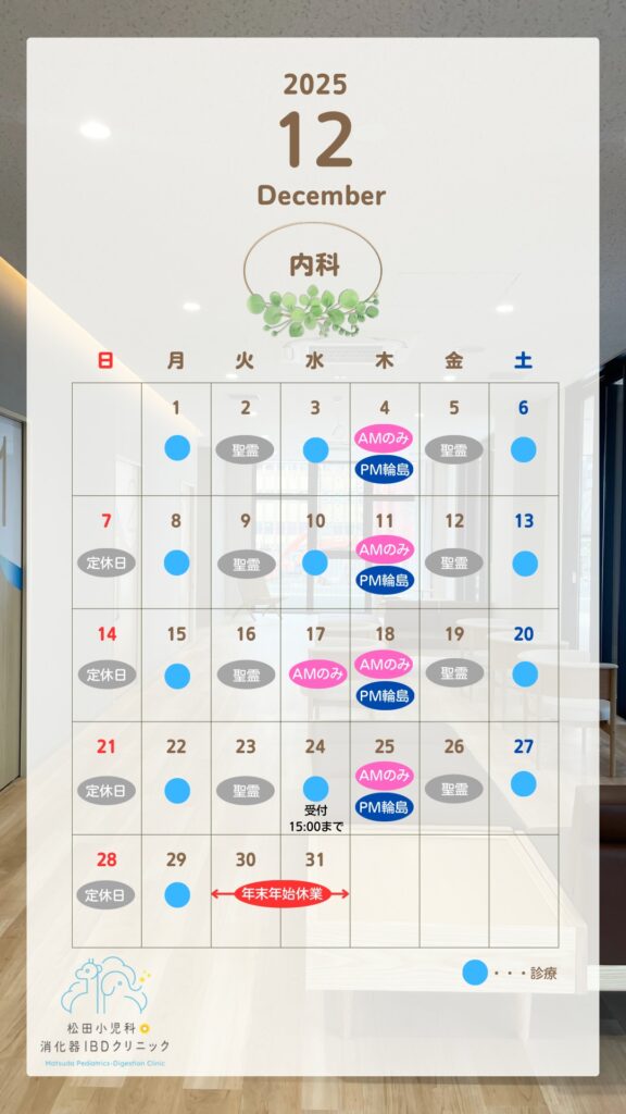 内科12月の診療スケジュールをお知らせいたします。