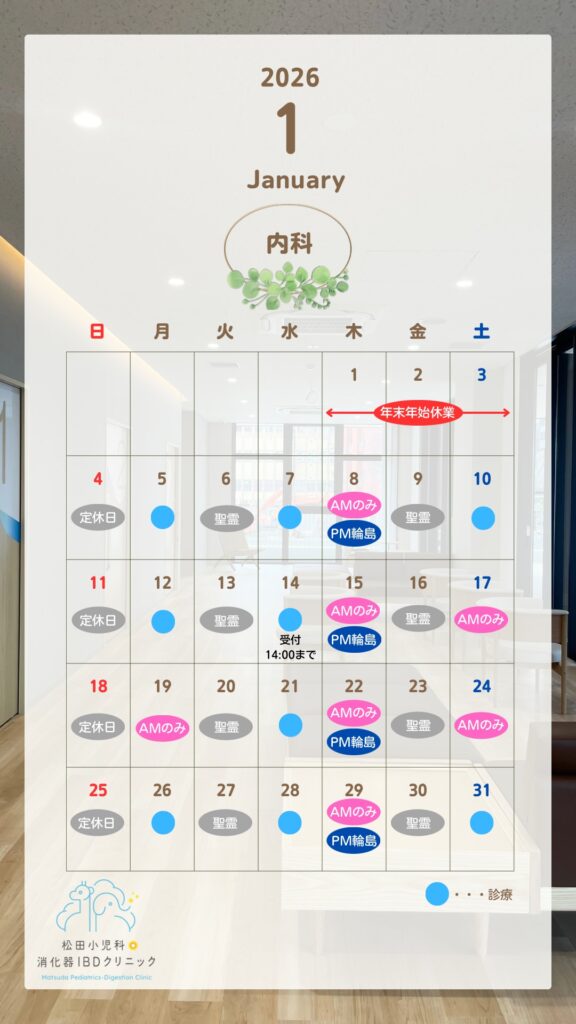 内科2026年1月の診療スケジュールをお知らせいたします。