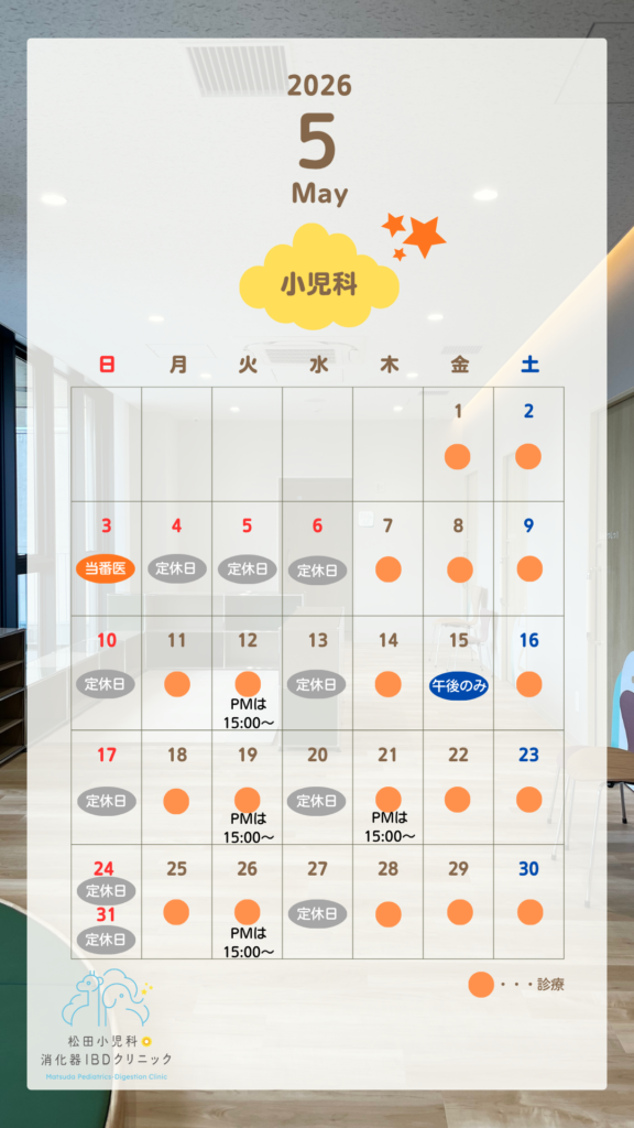 2026年5月小児科の診療スケジュールをお知らせいたします。
