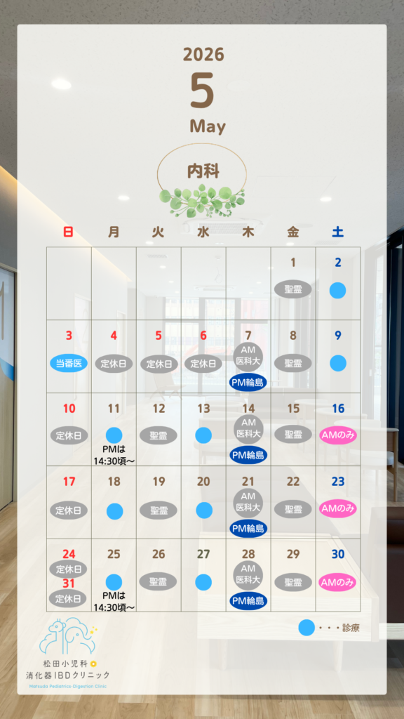 2026年5月内科の診療スケジュールをお知らせいたします。